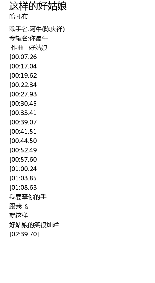 | [02:34.93] | 好姑娘的笑很灿烂 |