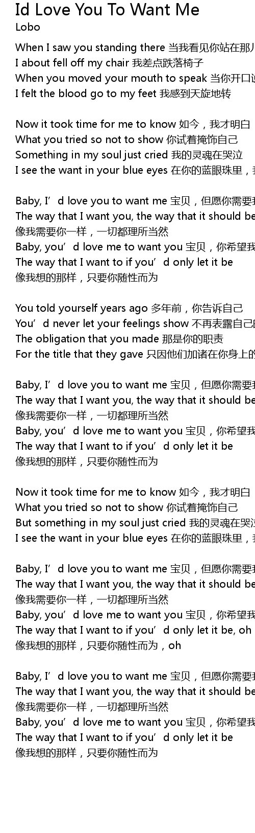 | Baby, you’d love me to want you 宝贝,你希望我需要你 | |