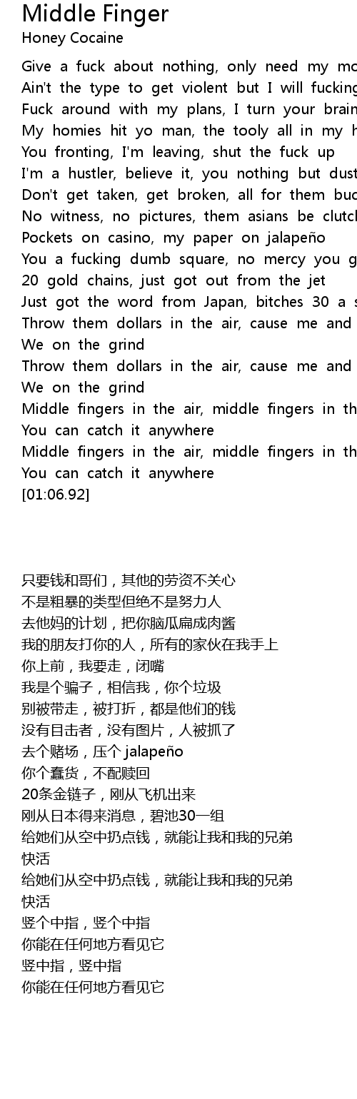 | [00:58.57] | Middle fingers in the air, middle fingers in the air |