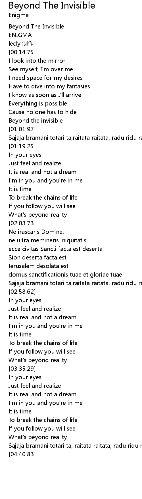 | [00:01.68] | Beyond The Invisible |