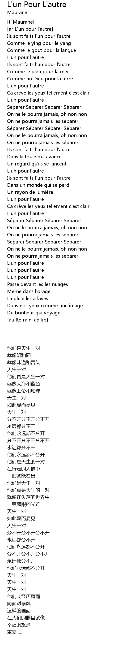 | [00:39.050] | L'un pour l'autre |