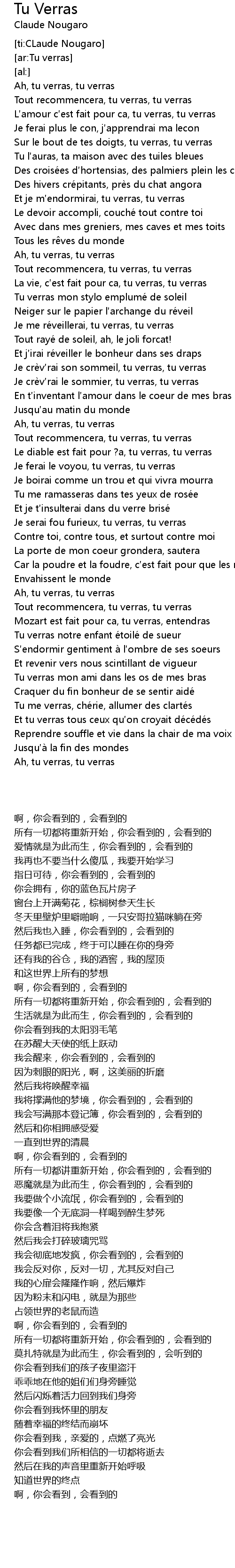 | [02:44.64] | Tu me verras, che rie, allumer des clarte s |