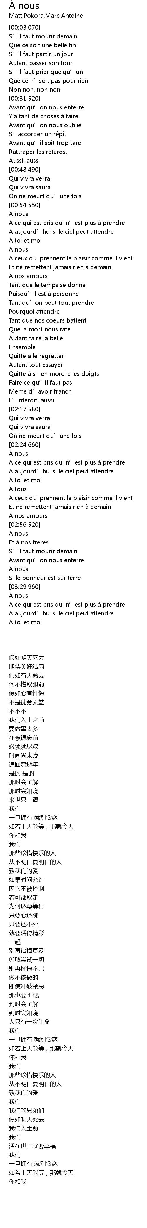 | [03:36.490] | A aujourd' hui si le ciel peut attendre |