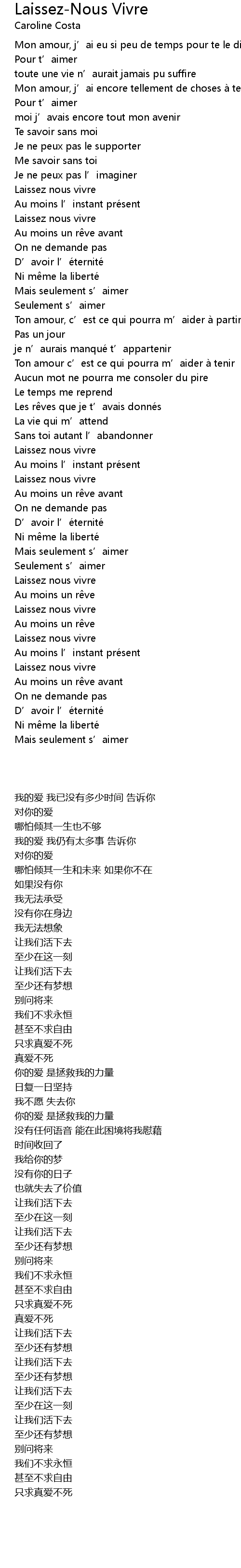 | [01:58.530] | Laissez nous vivre |
