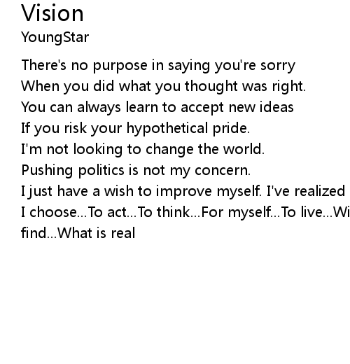 | I choose...To act...To think...For myself...To live...With no regrets...And to find...What is real |