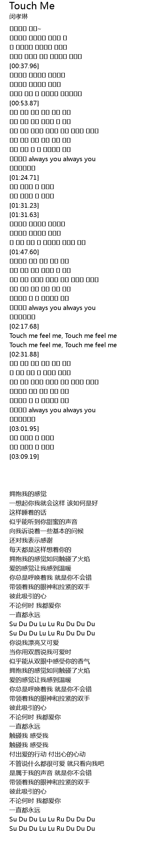 | [02:17.91] | Touch me feel me, Touch me feel me |
