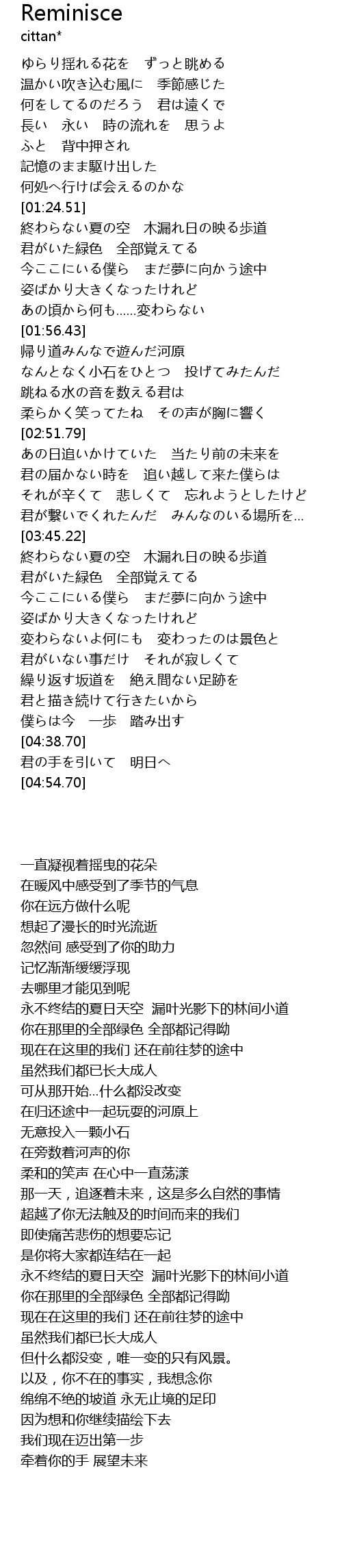 | [04:18.95] | 繰り返す坂道を 絶え間ない足跡を |