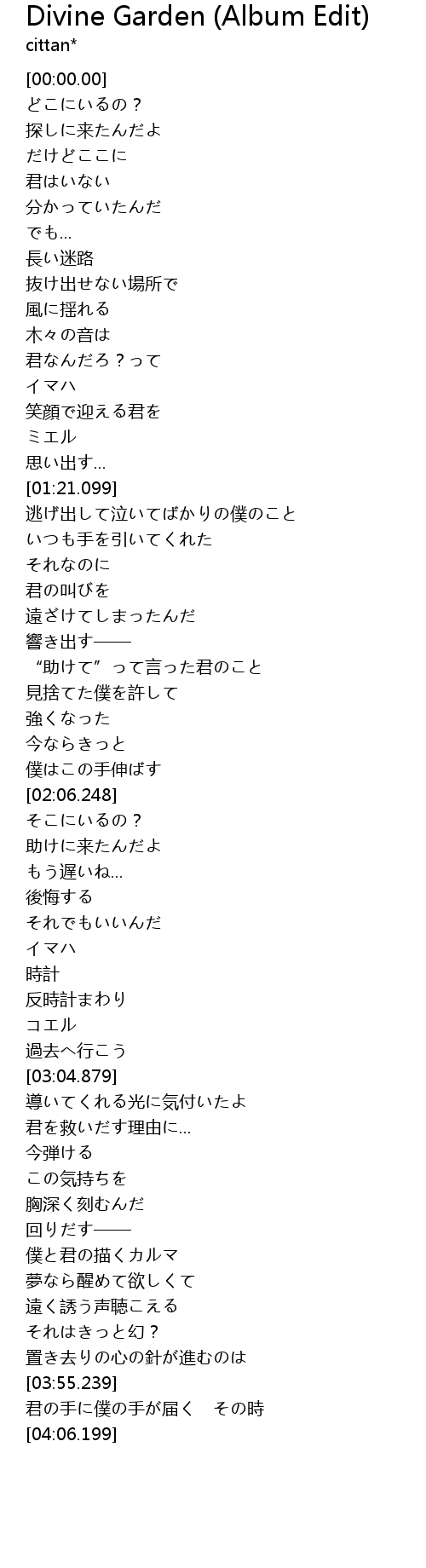 | [03:37.699] | 遠く誘う声聴こえる |