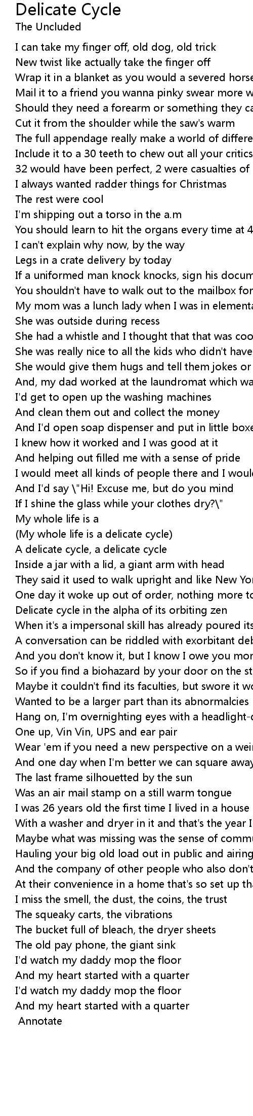 (My whole life is a delicate cycle) |