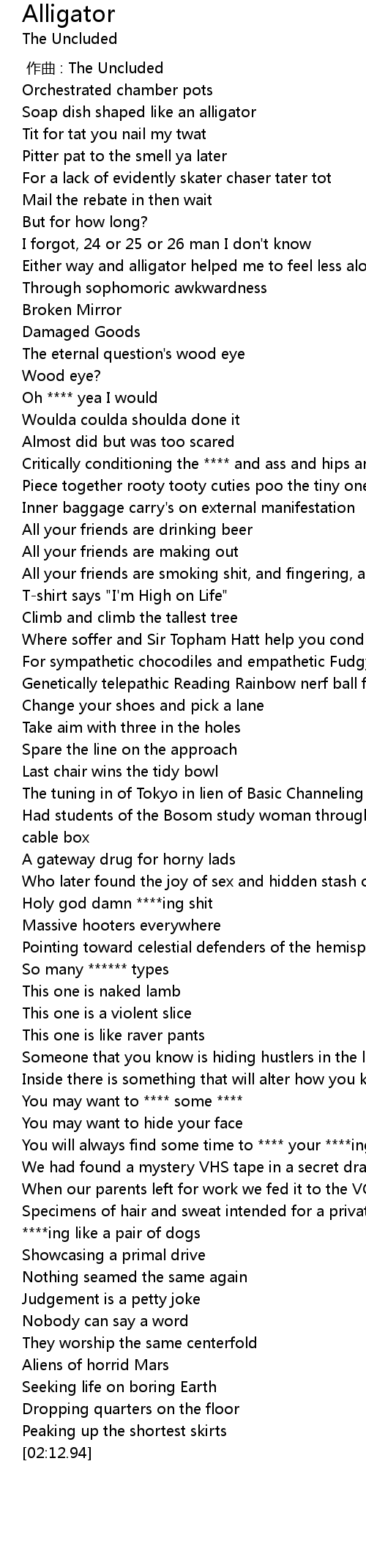 | [00:43.94] | All your friends are smoking shit, and fingering, and going down |