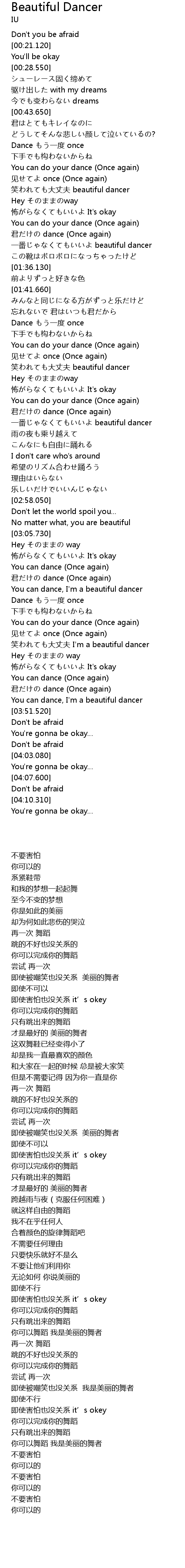 | [03:16.990] | You can dance, I' m a beautiful dancer |