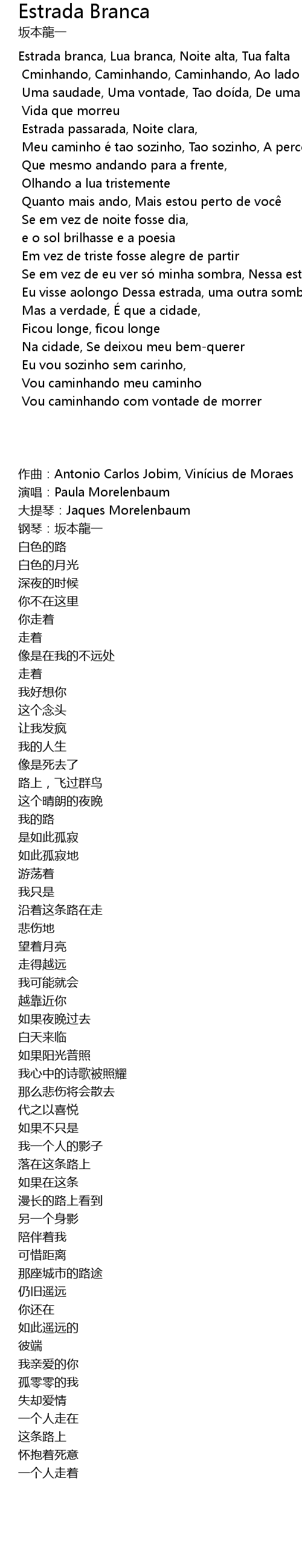 | Estrada branca, Lua branca, Noite alta, Tua falta | |