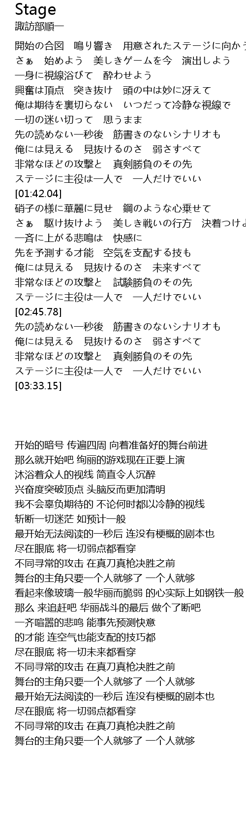 | [03:24.59] | ステージに主役は一人で 一人だけでいい |