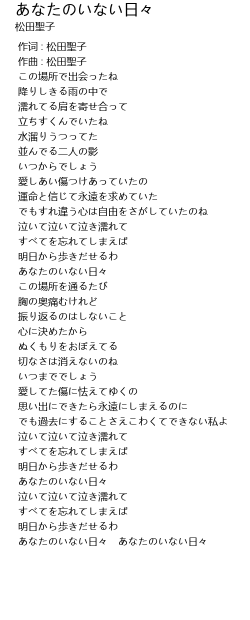 | [04:18.785] | あなたのいない日々 あなたのいない日々 |