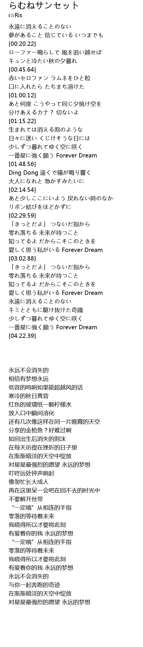 | [04:10.29] | 一番星に強く願う Forever Dream |