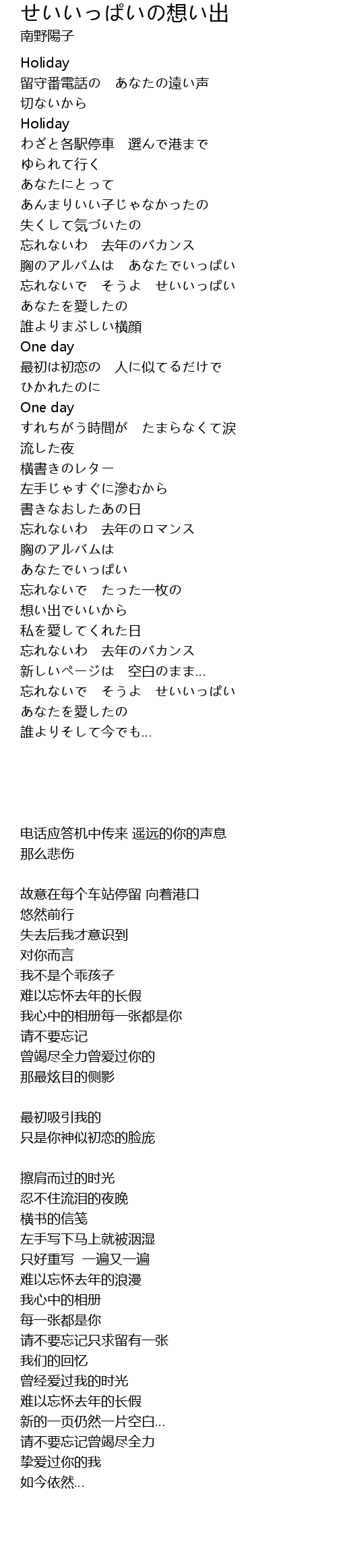 | [03:20.300] | 忘れないわ 去年のバカンス |