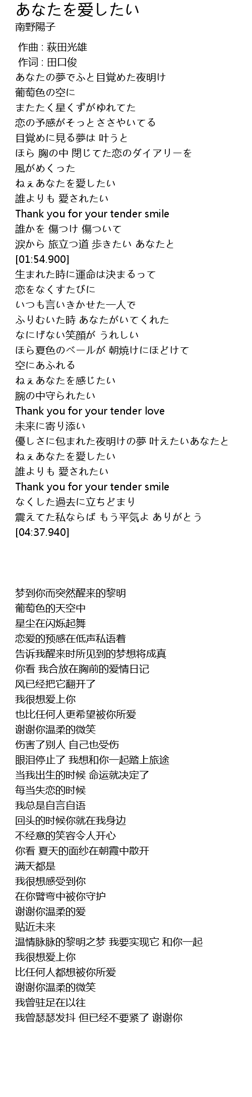 | [04:02.320] | Thank you for your tender smile |
