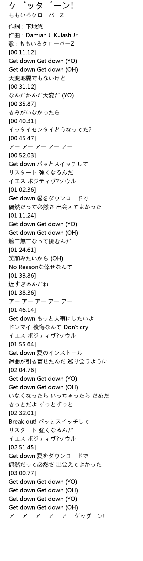 | [01:47.45] | Get down もっと大事にしたいよ |