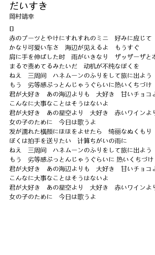 | 君が大好き あの海辺よりも 大好き 甘いチョコよりも | |