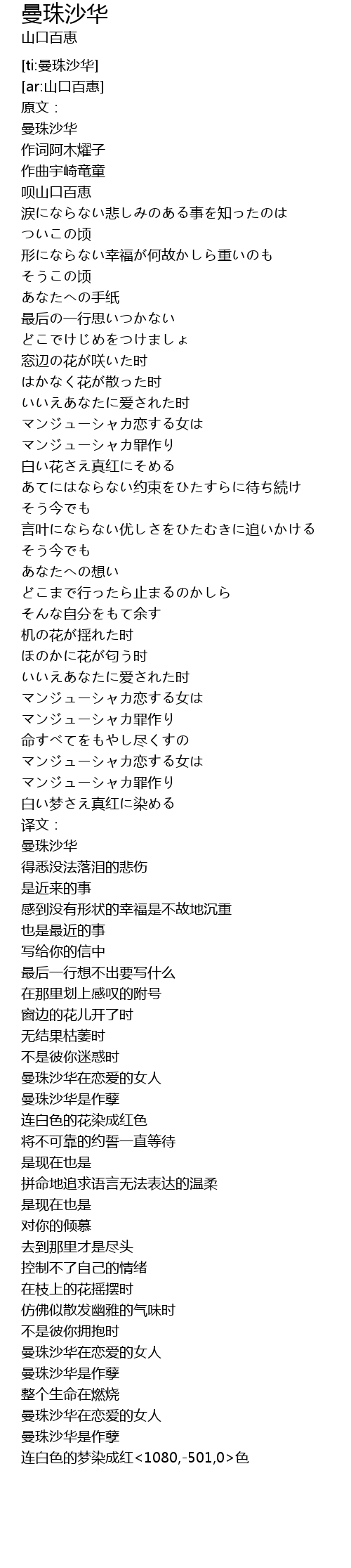 | [05:05.455] | 曼珠沙华在恋爱的女人 |