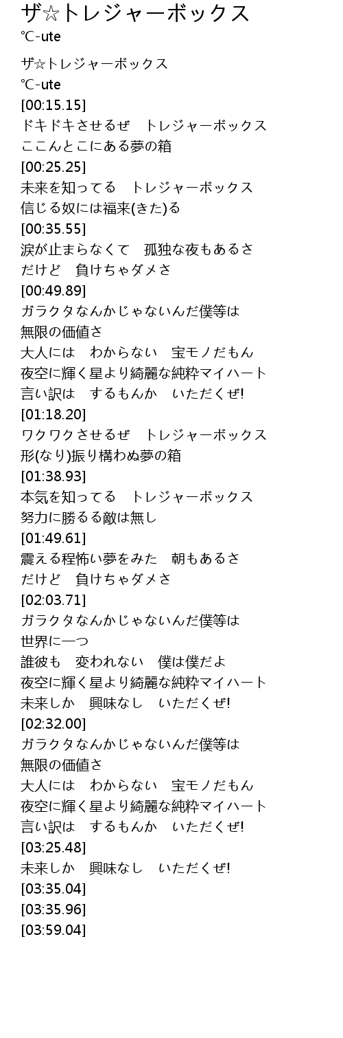 | [00:29.80] | 未来を知ってる トレジャーボックス |