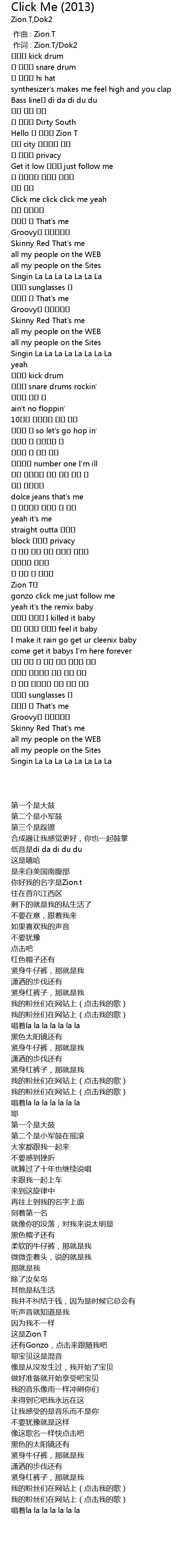 | [00:01.00] | 作词 : Zion.T/Dok2 |