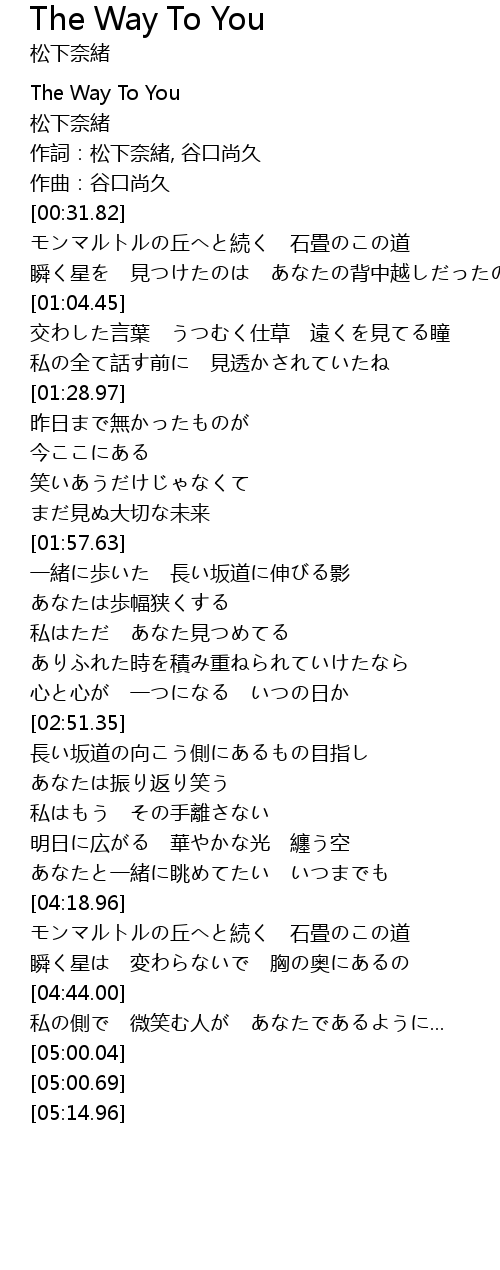 | [00:00.00] | The Way To You |
