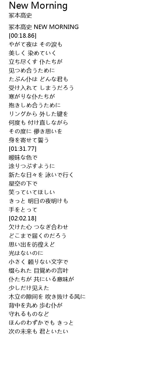 | [00:02.56] | 冢本高史 NEW MORNING |