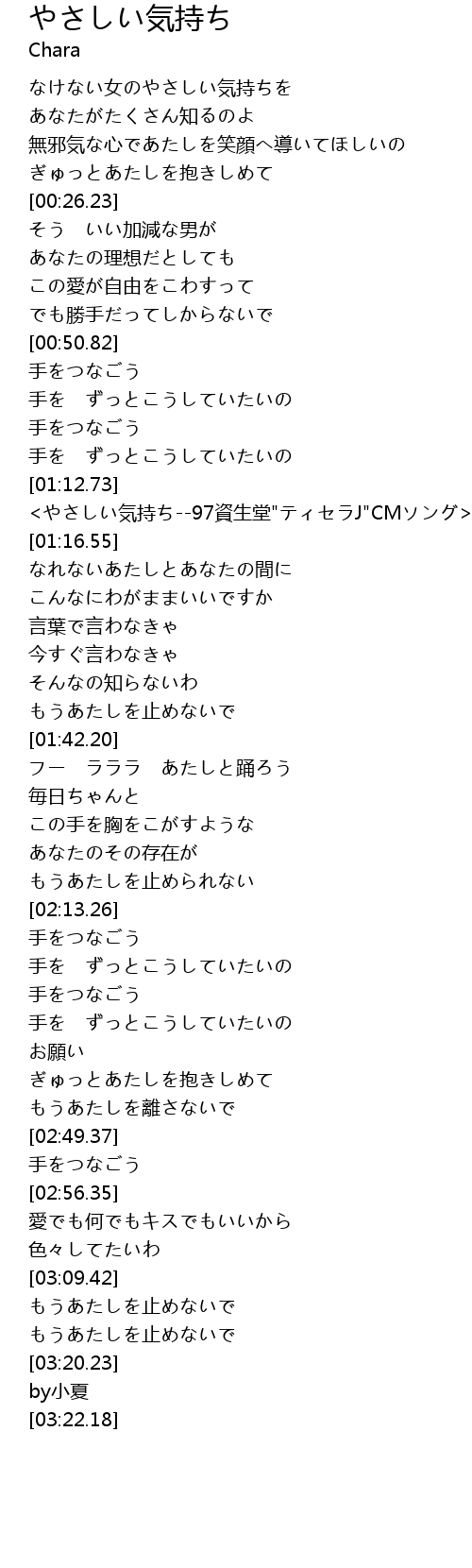 | [01:14.17] | <やさしい気持ち--97資生堂"ティセラJ"CMソング> |
