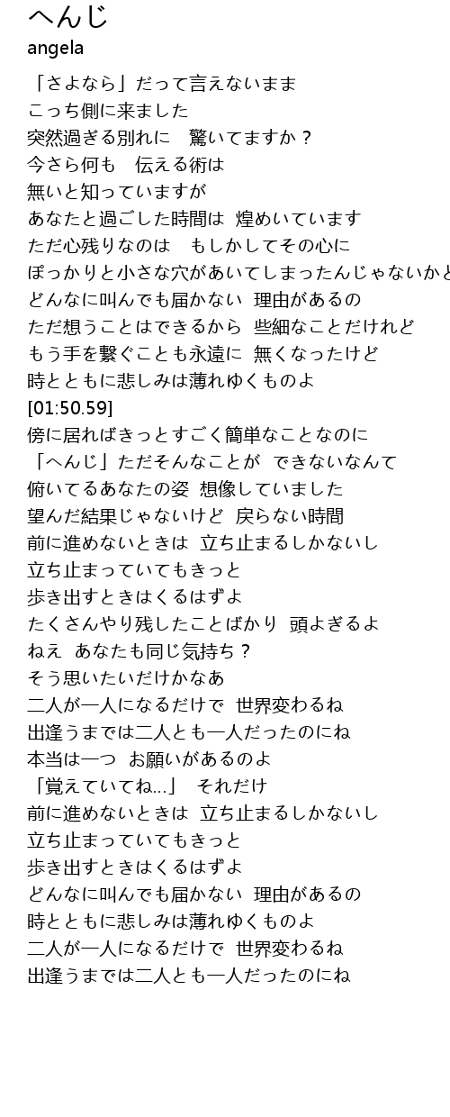 | [02:10.15] | 「へんじ」ただそんなことが できないなんて |