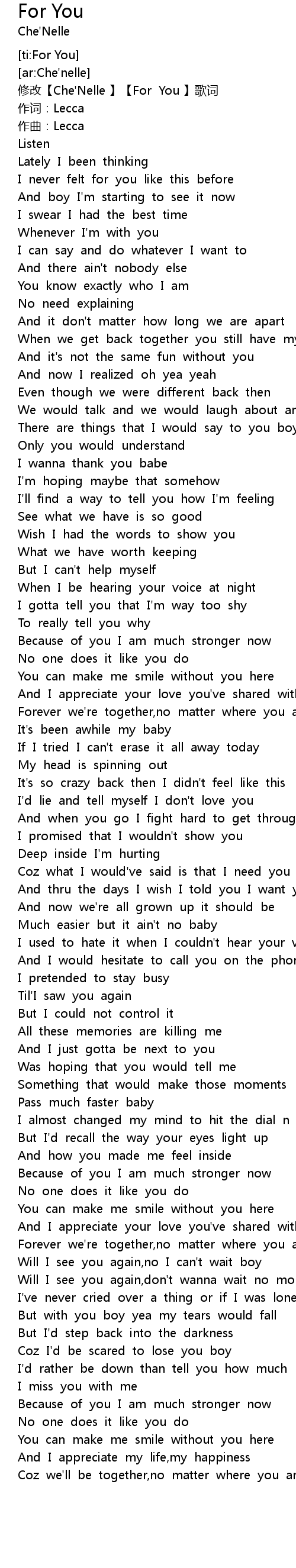 | [00:03.94] | 修改【Che'Nelle 】【For You 】歌词 |