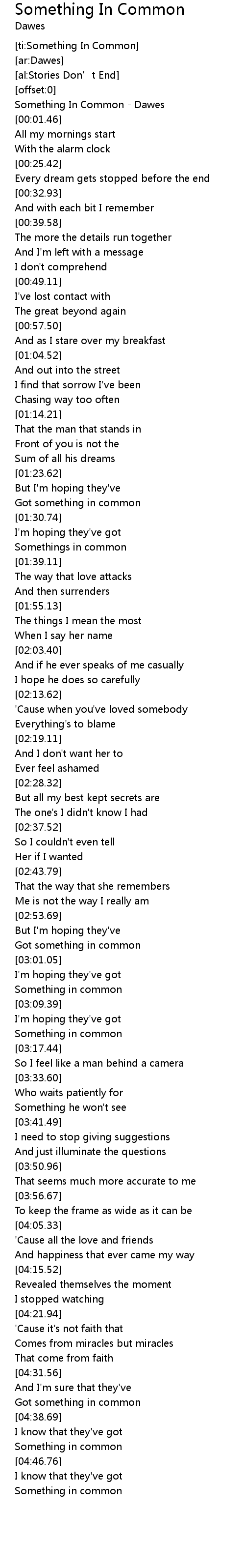 | [00:00.56] | Something In Common Dawes |