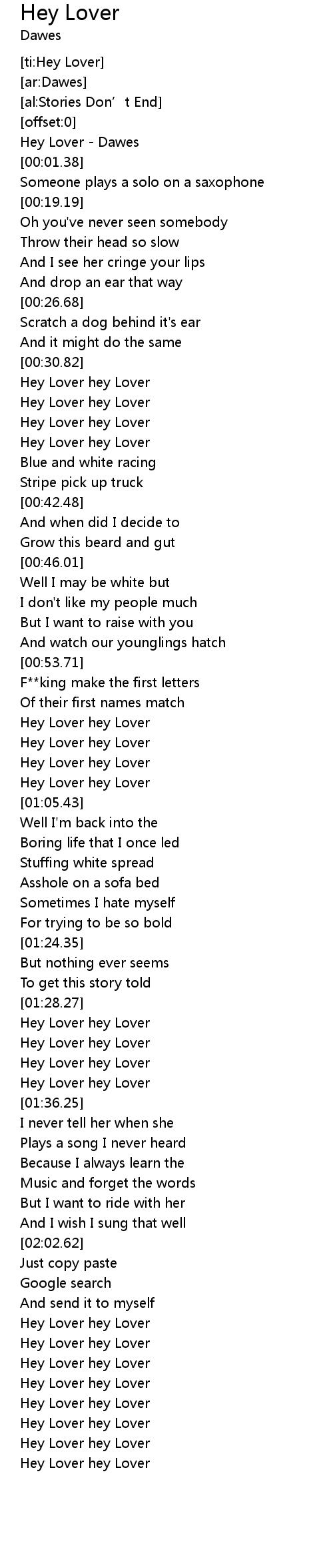 | [02:20.22] | Hey Lover hey Lover |