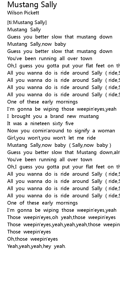 | [02:05.246] | Mustang Sally, now baby Sally, now baby |