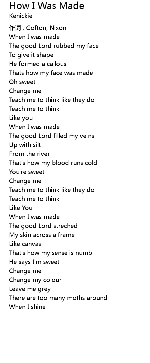 | Song | How I Was Made |