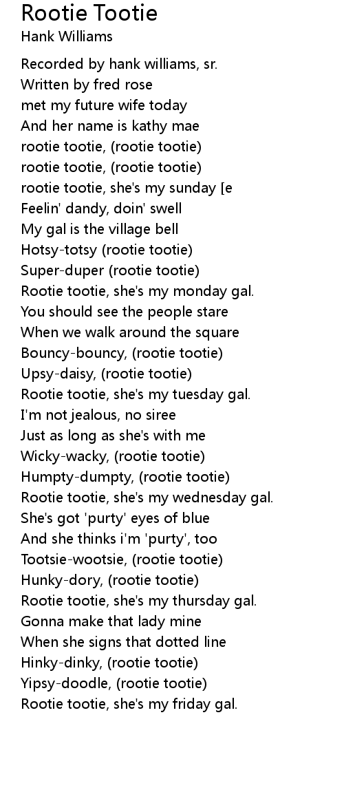 Rootie tootie, she's my tuesday gal. |