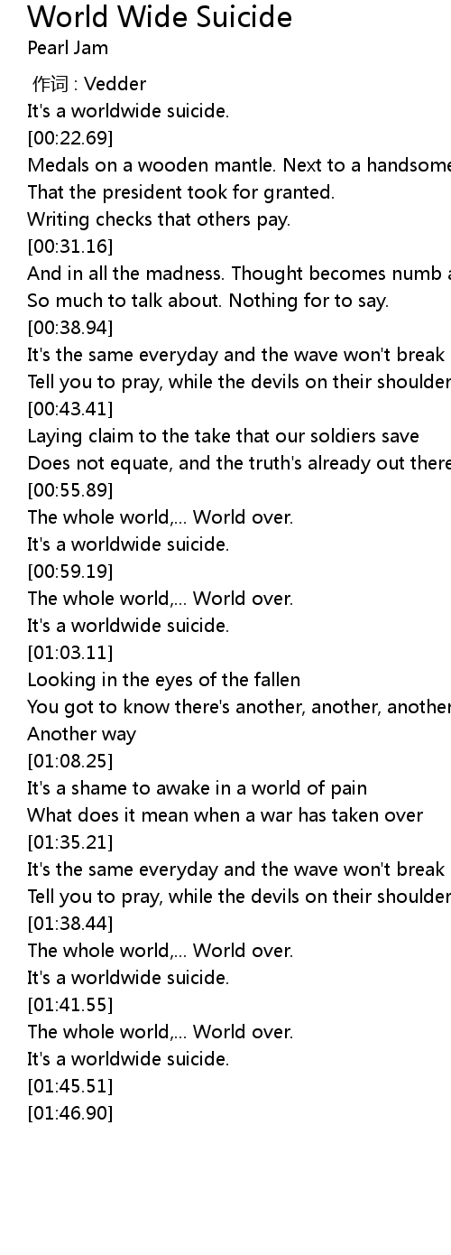 | [00:45.54] | Does not equate, and the truth' s already out there |