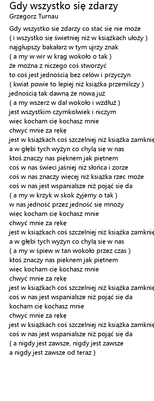 | [00:13.86] | Gdy wszystko się zdarzy co stać się nie może |