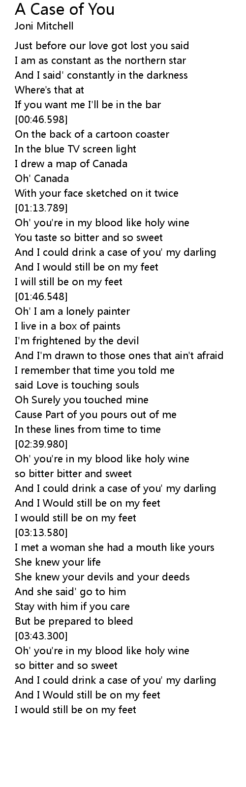 | [01:13.798] | Oh' you' re in my blood like holy wine |