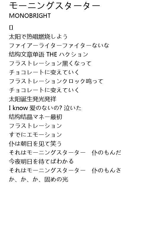 | Song | モーニングスターター |