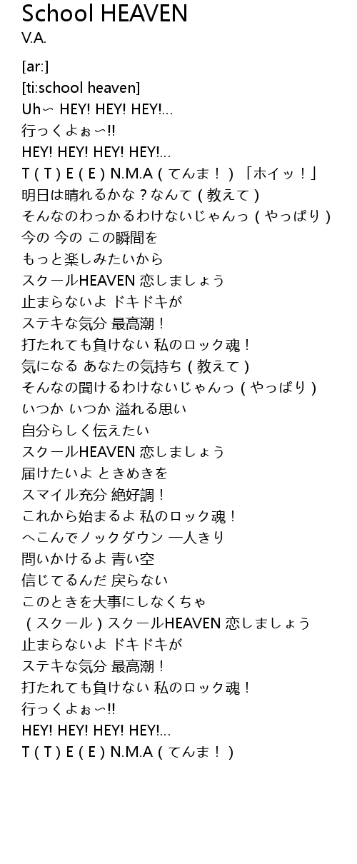 | [00:55.66] | スクールHEAVEN 恋しましょう |