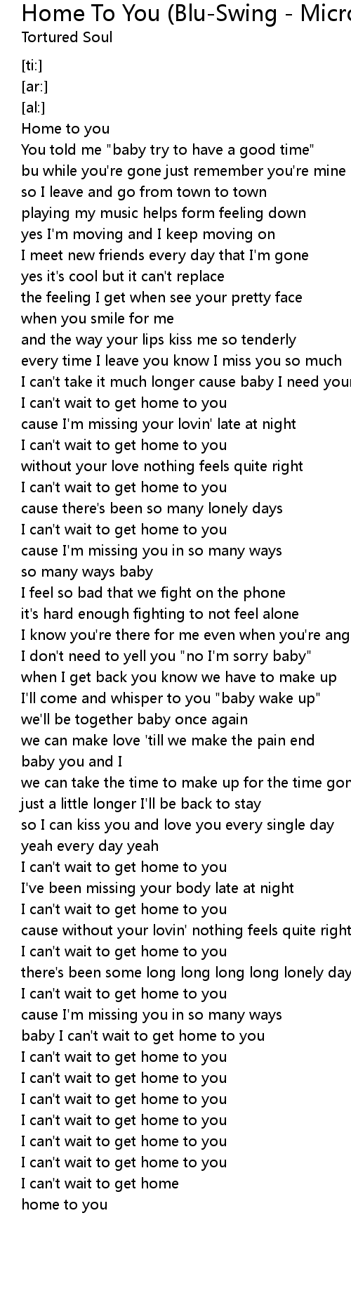 Home To You (Blu-Swing - Micro Beats Mix) Lyrics