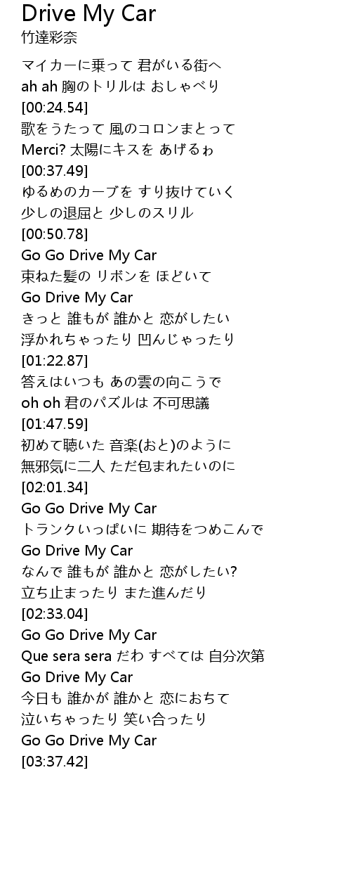 | [03:00.92] | Go Go Drive My Car |