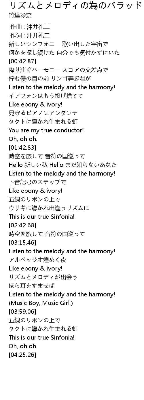 | [03:19.86] | Listen to the melody and the harmony! |