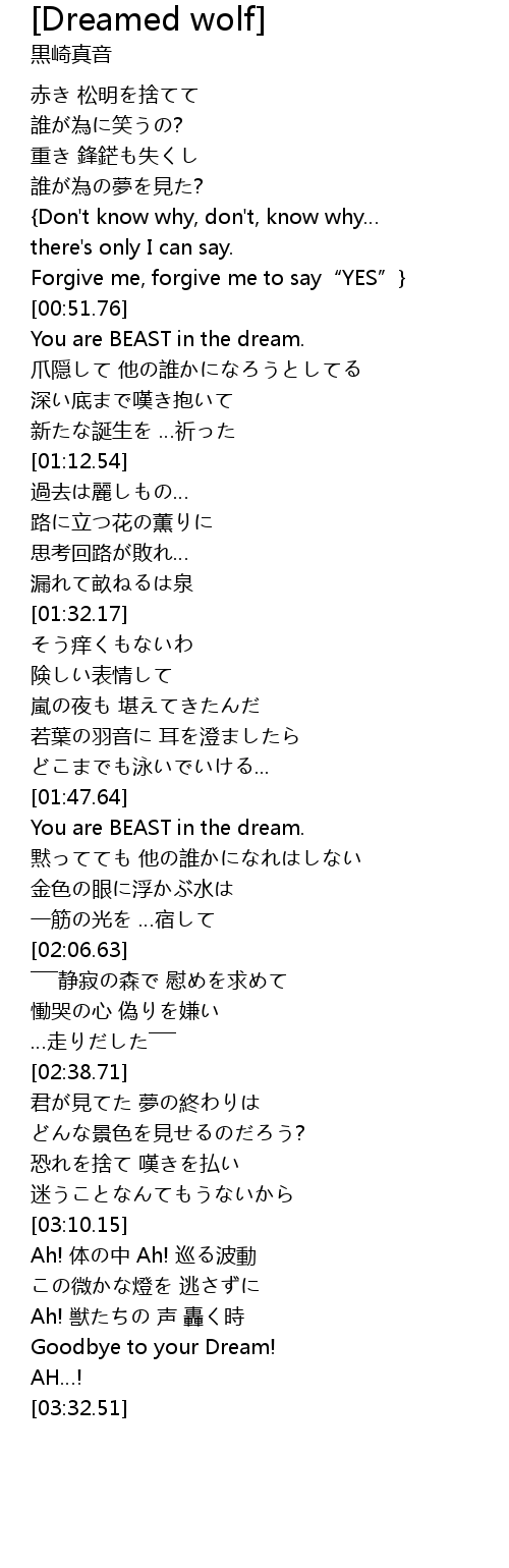 | [01:48.12] | You are BEAST in the dream. |