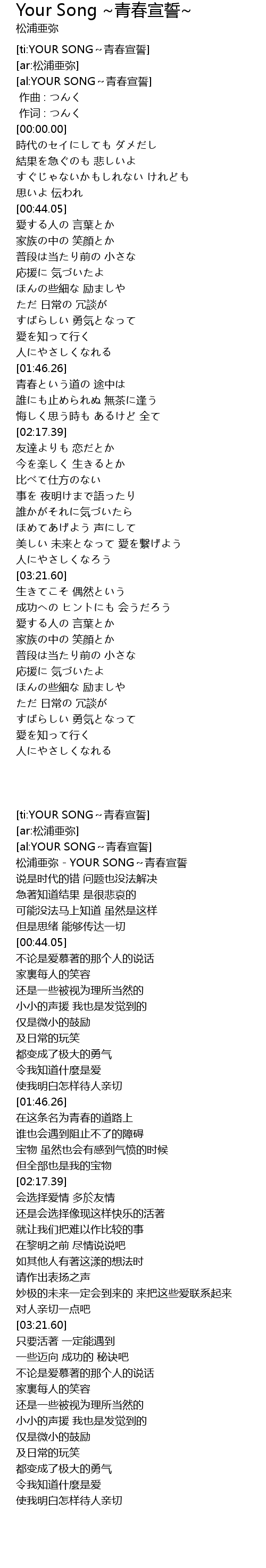 | ti: YOUR SONG qīng chūn xuān shì | |