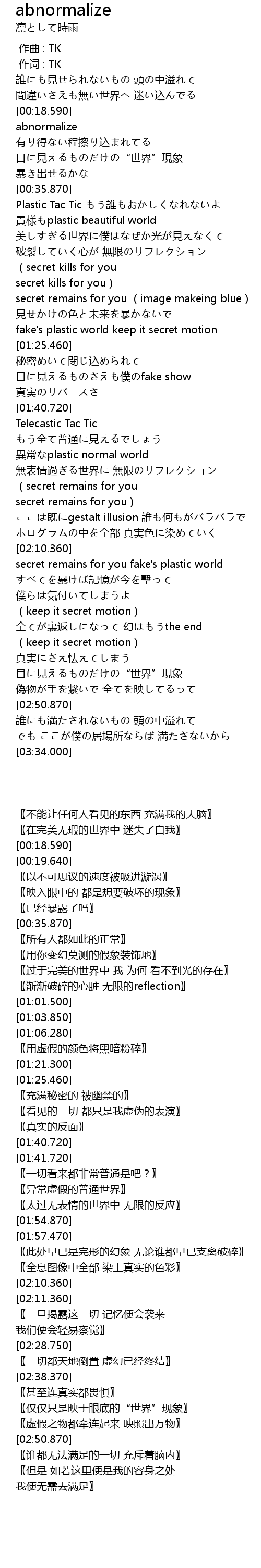 | [00:00.00] | 作曲 : TK |