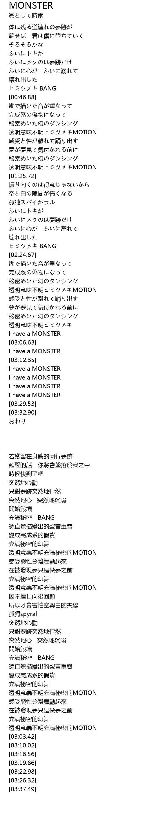 | [03:22.98] | I have a MONSTER |