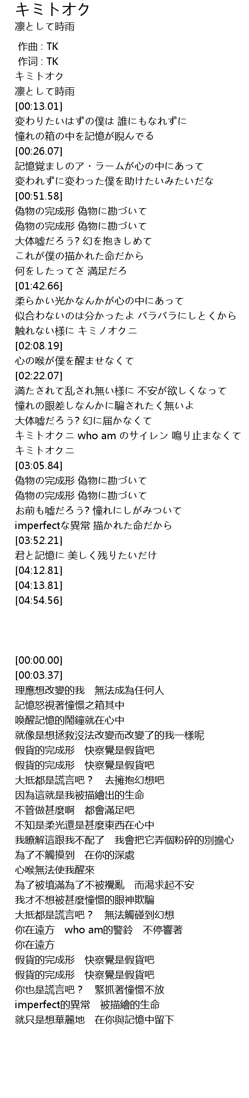 | [00:00.00] | 作曲 : TK |