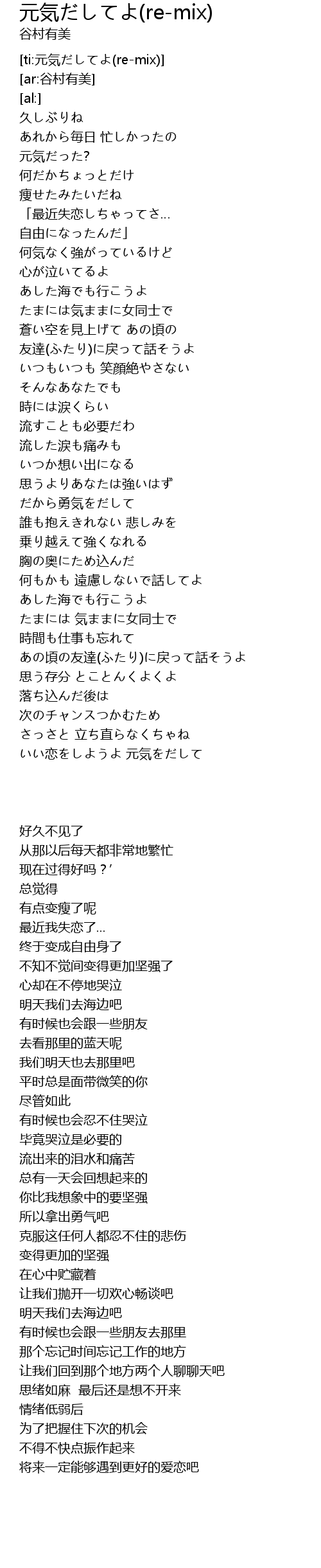 | [03:44.53] | いい恋をしようよ 元気をだして |